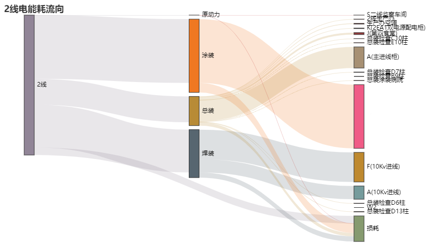 通過能流圖分析和展現(xiàn)車間整體能源在各個(gè)生產(chǎn)工藝的能耗流向,以及各個(gè)車間能耗損失的占比。