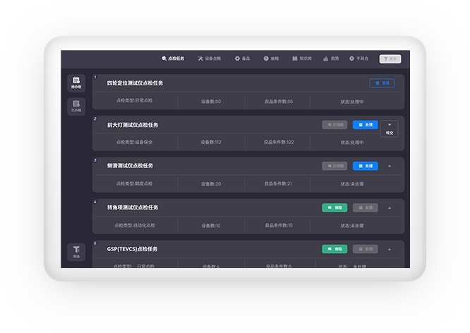日常點檢系統(tǒng)化,結(jié)合良品條件、點檢周期、人員信息等進行快速智能排班,為每臺設(shè)備創(chuàng)建巡檢計劃、定期定量維護計劃及年度大修計劃。點檢全程狀態(tài)可視,點檢結(jié)果可追溯。